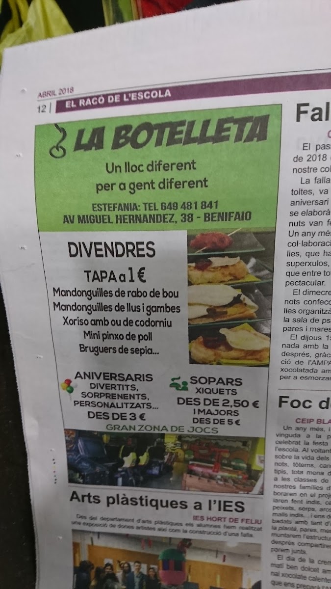 But don’t just take our word for it! Customers like Tocyklon and Raquel Montagud Fogues express their gratitude for La Botelleta's excellent atmosphere and the fun recreational options available for kids. They report that the café is 'perfect for families,' emphasizing the exceptional treatment and care received from the staff. From Moussa Ben Sabar, we learn that dining here for any meal is not just enjoyable, but also an opportunity to connect with the warm-hearted locals and experience a bit of daily life in Benifaió.